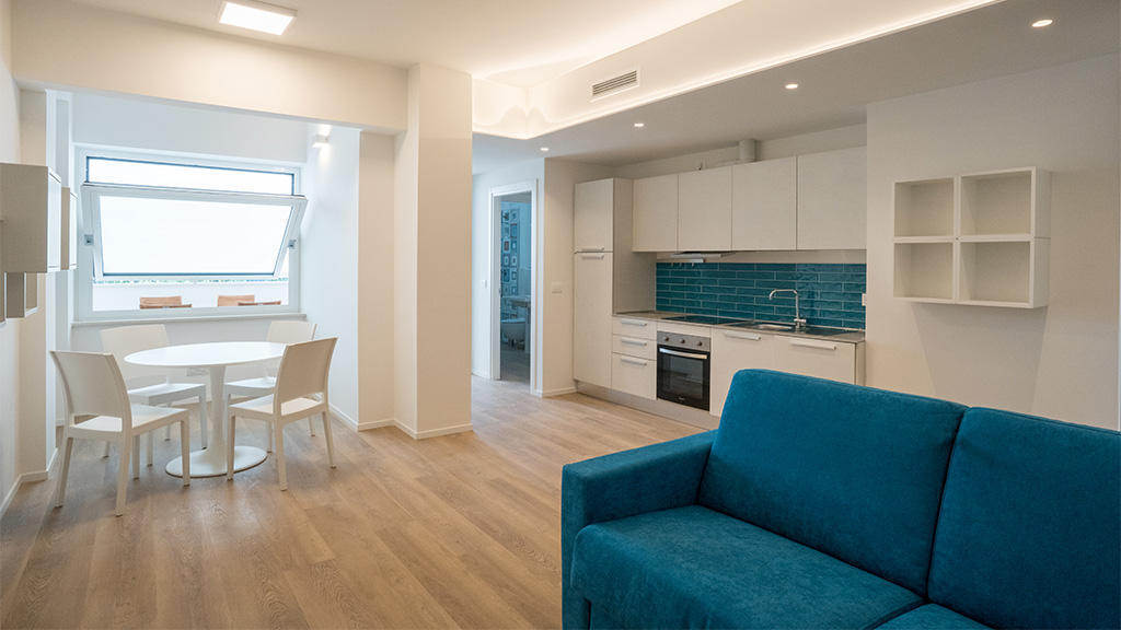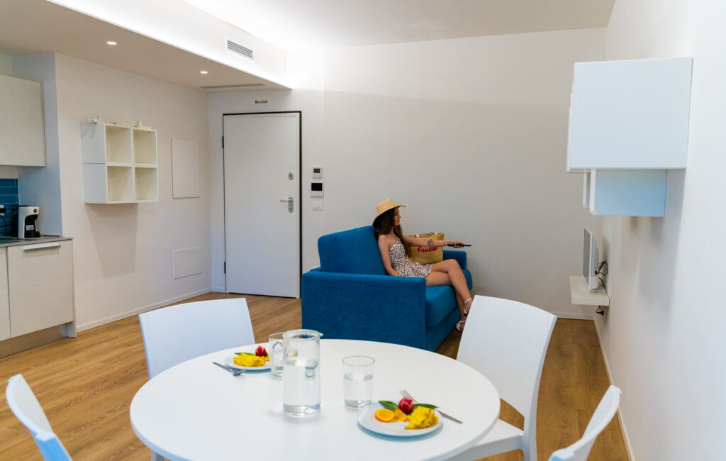 Für Ihren Urlaub am Meer können Sie eine der 8 Ein-Zimmer-Wohnungen wählen die in einem einfachen und eleganten Stil eingerichtet sind. Alle Wohnungen sind schallisoliert und verfügen über eine möblierte Terrasse, Bad, Klimaanlage, und eine Kochnische. Sie sind etwa 50 Quadratmeter groß und einige von ihnen bieten einen herrlichen Blick auf das Meer und den Pinienwald.